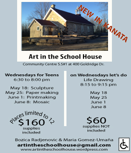 We are beginning a new venture: Entrepreneurship in the Arts. Bozica Radjenovic and myself are bringing art to Kanata, finally. We are offering two weekly sessions, one is art classes for teens and the second is live model sessions for adults. They happen four Wednesdays this spring.